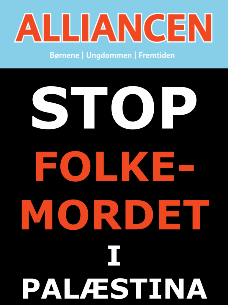 Alliancen for Børnene, Ungdommen og Fremtiden mener, at, udover at fordømme Israel, skal Danmark øjeblikkelig stoppe al samarbejde med staten Israel, både politisk og militært, indtil folkemordet stopper.